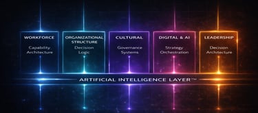 Enterprise performance is not driven by isolated initiatives. It is shaped by how workforce, structure, governance, digital execution, and leadership judgment function together. When these systems operate independently, friction compounds.